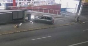 Flagrante: carro sobe a calçada abrigo de ônibus no Centro de...