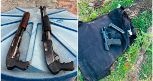 Polícia Militar prende criminosos com espingardas, pistola e colete balístico em...
