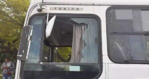 Motorista de ônibus é atingido por estrutura de alumínio enquanto dirigia,...